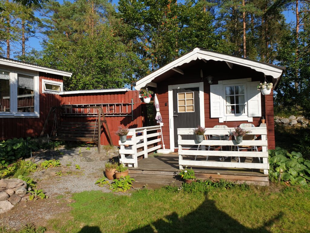 Huset er vores private hus og udlejes ikke. Huset er på ca. 59 m2 og indeholder stue/soveværelse, køkken, havestue og bad/toilet. Der er 3-4 sovepladser.